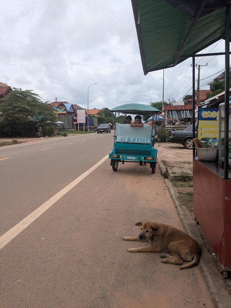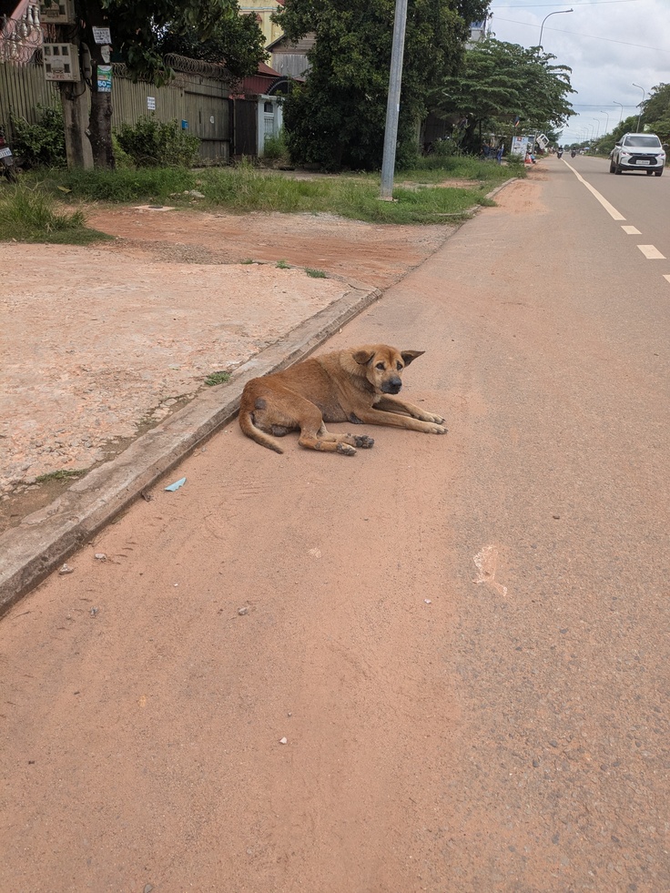 今日知り合いのツクツク運転手と郊外を見回っていると、びっこをひいた犬を発見しました。