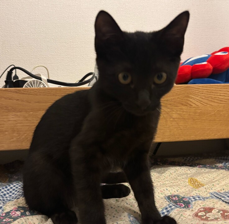 今月の中頃に突然に現飼い主さんの庭先に現れた黒猫の子猫