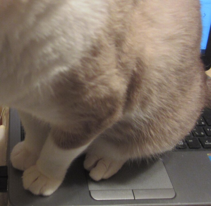 (事務作業を手伝う「ぽんちゃん」の様子)