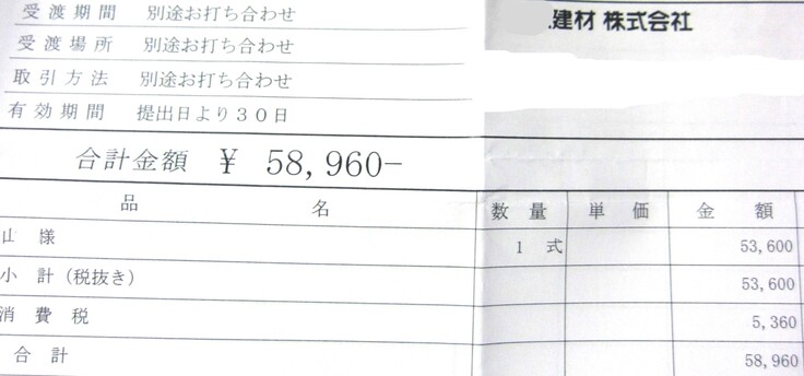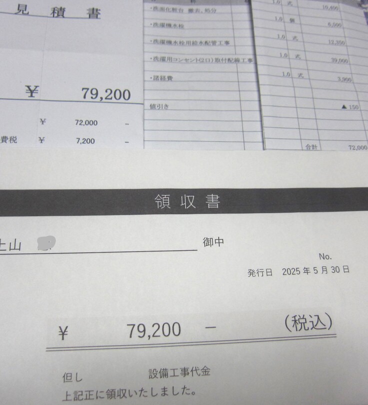 (領収書)改修工事/購入品類
