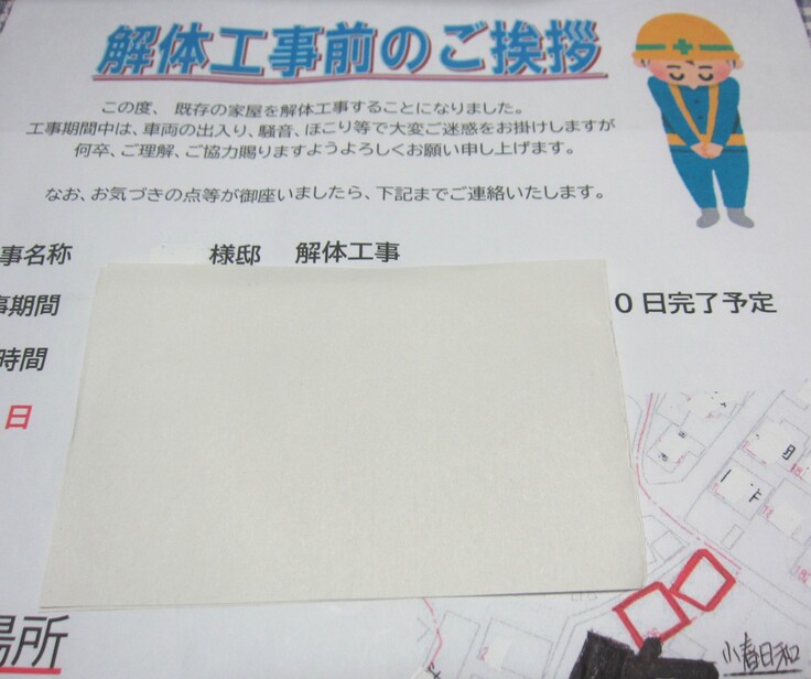 (下記の隣接空き家の解体工事が有り私共でも駐車スペースや騒音等々を考慮し