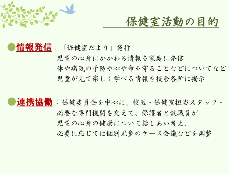 保健室が当たり前にある環境にどうぞご協力よろしくお願いいたします。