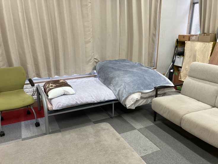 この学校にも、従来より正式な「保健室」は設けていません。今は空き部屋に、以前本校舎の更衣室の一画を利用して、ベッドや医薬品等を置いて保健室として代用しています。最近は第二校舎一階の幼稚園保育室にベッドをおいて傷病者を休ませたり応急処置をしたりしています。