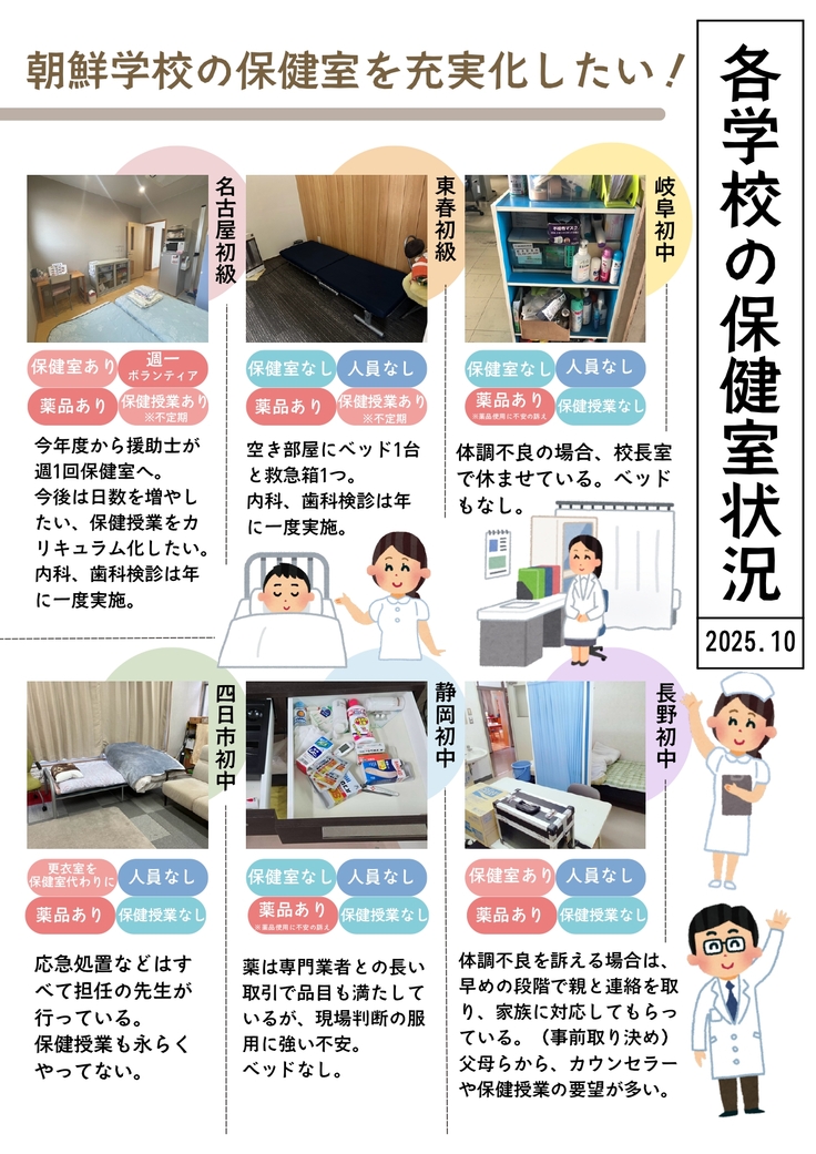 また、下記はこの募集期間に各朝鮮学校の保健室の状況をまとめたものです。現状を知ってもらえたらと思います。