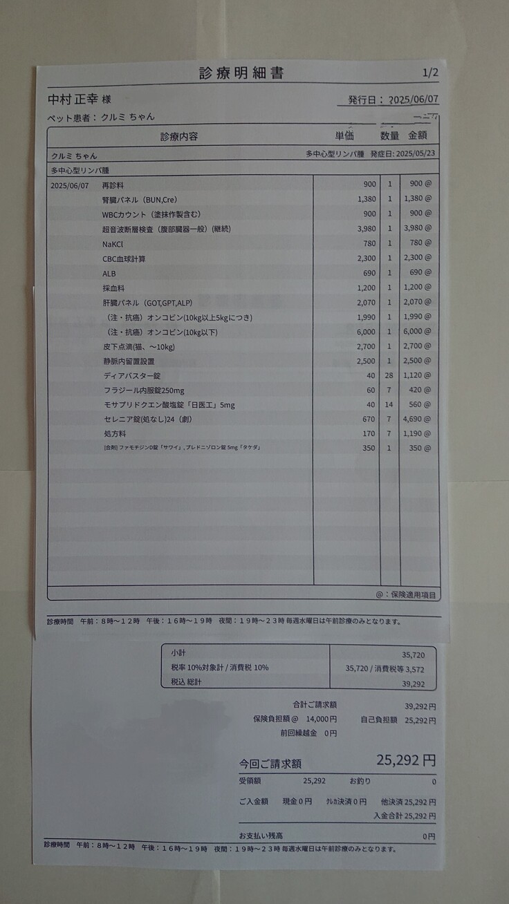今回は副作用なのか食欲、元気がなくなり、水分もあまり取らない日々が続き心配でしたが3日目の夜くらいから少しずつ食べたり、水分取ったりしてくれました。