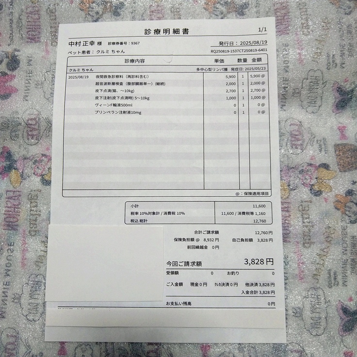 8月17日、8月19日に抗がん剤の副作用により体調不良で点滴をしてもらいに夜間病院に行ってきました!