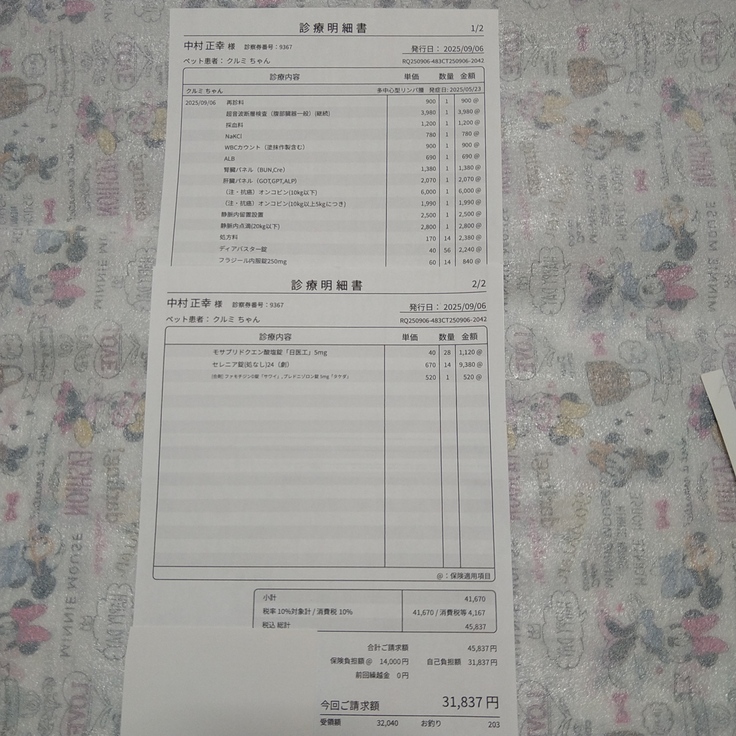皆さまには一気に投稿で申し訳ございません。明細載せておきます!