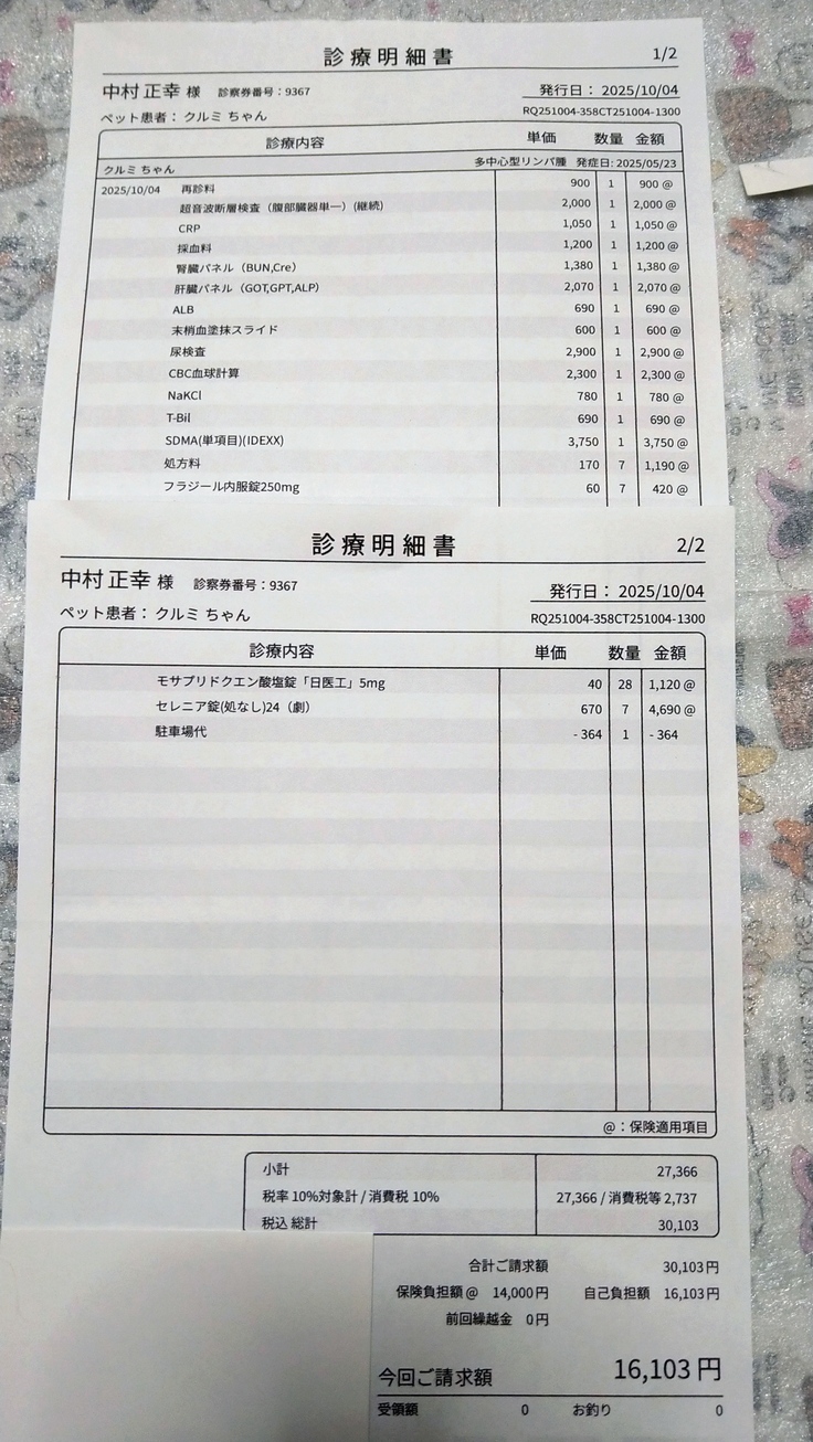 10月4日に最後の抗がん剤治療しに病院に行ったところ、肝臓の数値が高いとの事で検査してもらい少し様子見てからとの事で帰宅することになりました😭