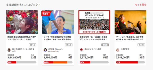 そして、クラウドのページの総支援金額ランキングでも上位で、ページのトップに載るようになりました。