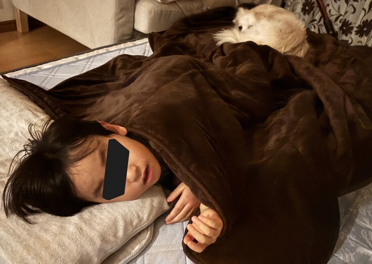 最近は「僕もハクちゃんと寝る」と息子もリビングの布団へ😊