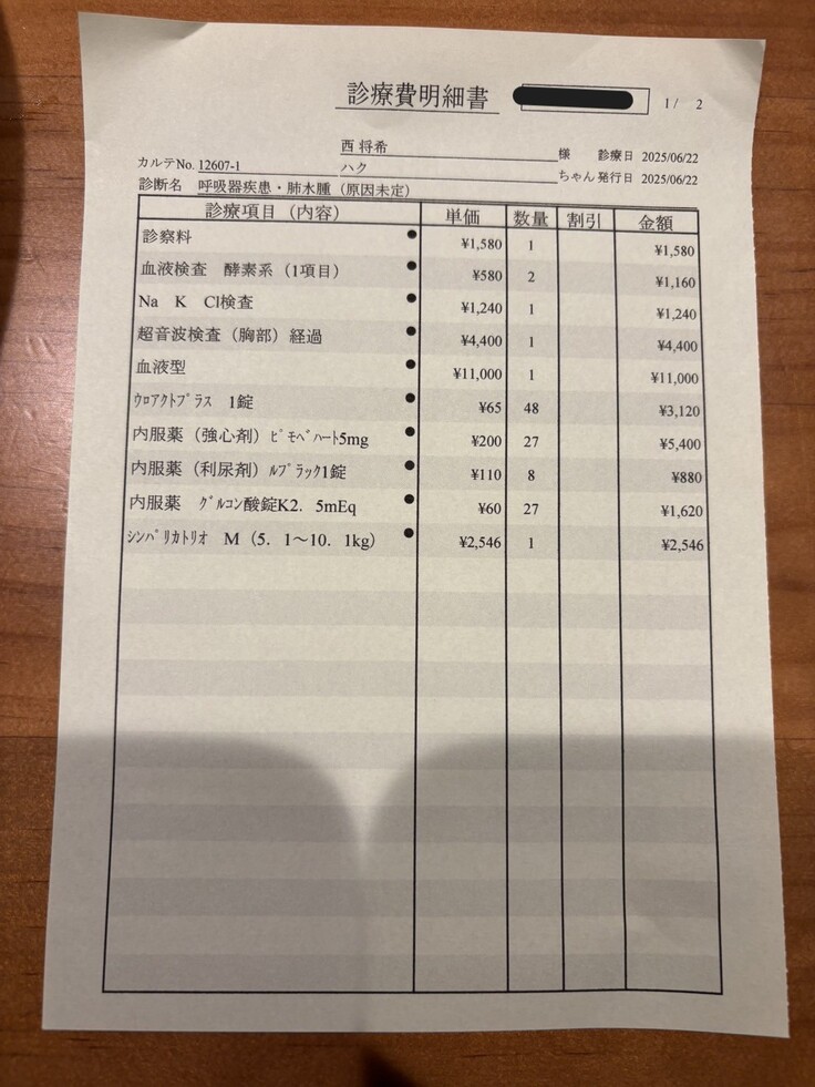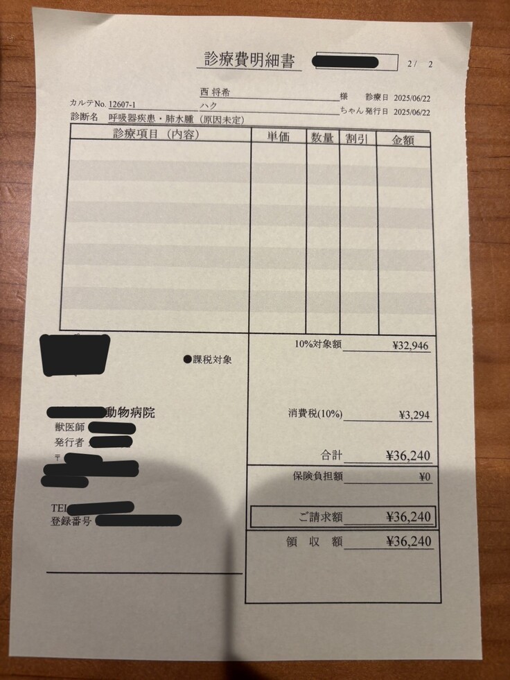 ご支援金はすべてハクの手術費、入院費とさせていただきます。
