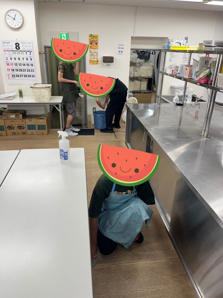 食品を扱う場所なので、床など様々な場所をキレイにお掃除!