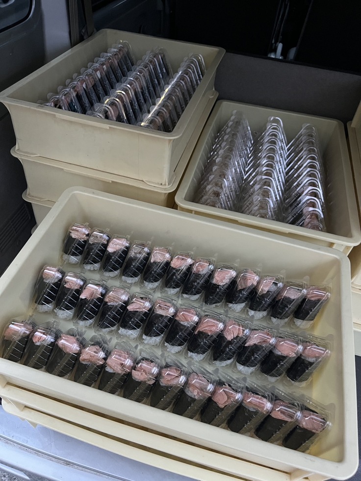 この時はイベントで600個近くのおにぎりを明け方に配達しましたが、通常は100個前後をお届けしています