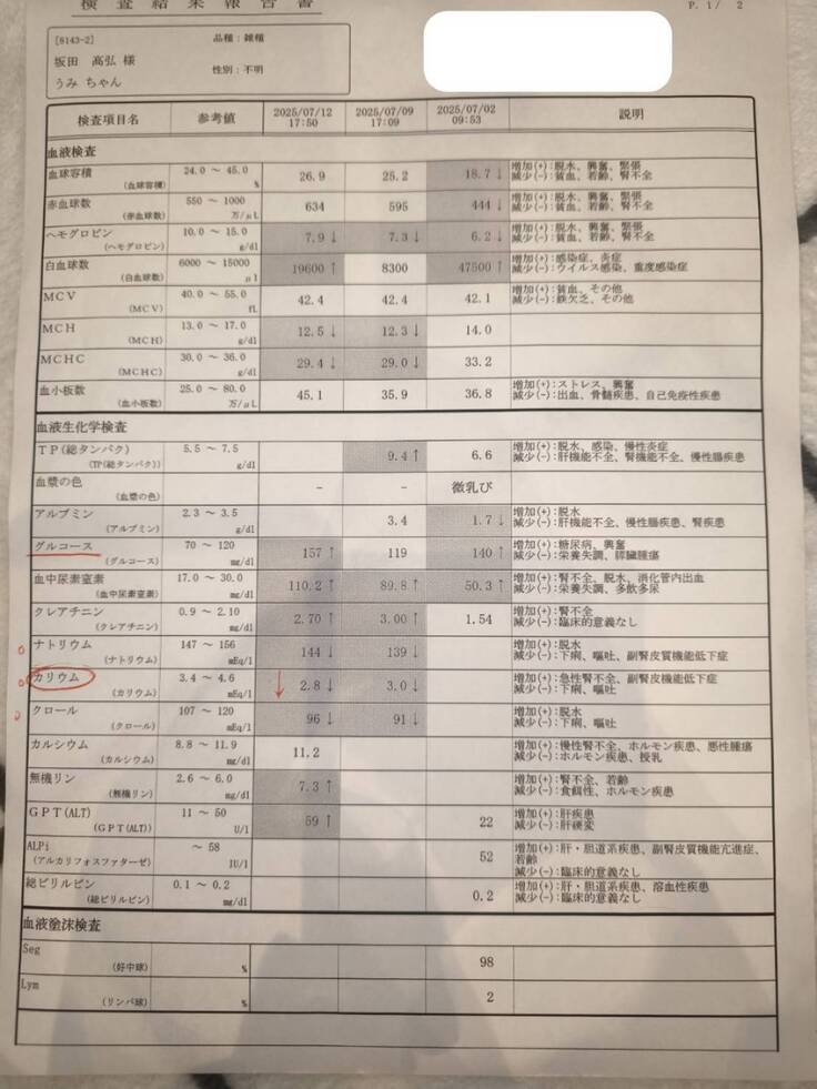 腎臓の数値も悪いには悪いけども、グッタリするほど悪い数値ではない。
