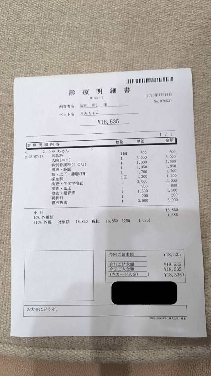 先生のお話で、胃液には栄養も含まれているからなるべく腸に流れて栄養を吸収して欲しいけど、胃液がいっぱいで苦しいと思うのでもしかすると注射で胃液を抜くかもしれません、とのことでした。