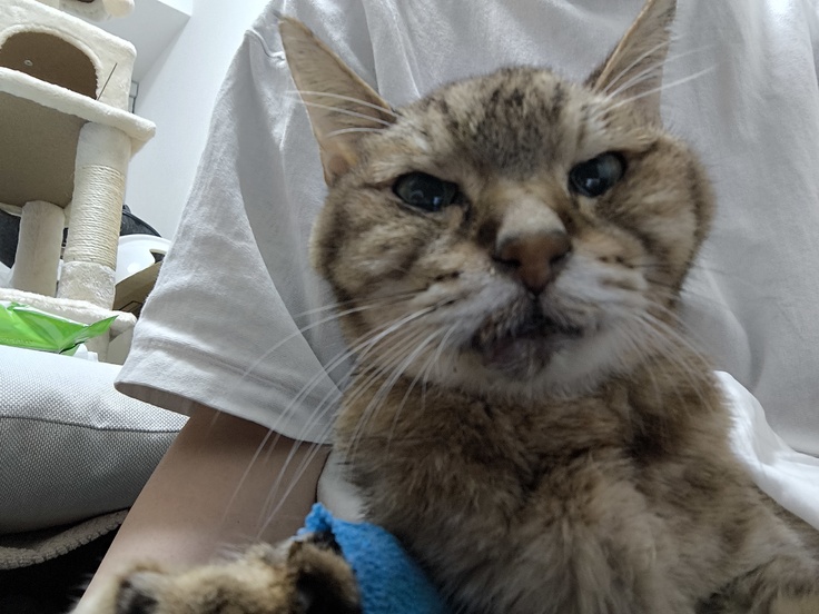 根本を治したいのですが、猫ちゃんは全身麻酔を行わないと歯科治療が出来ないのですが、生望ちゃんは腎臓が弱っているので全身麻酔が出来ません🙀