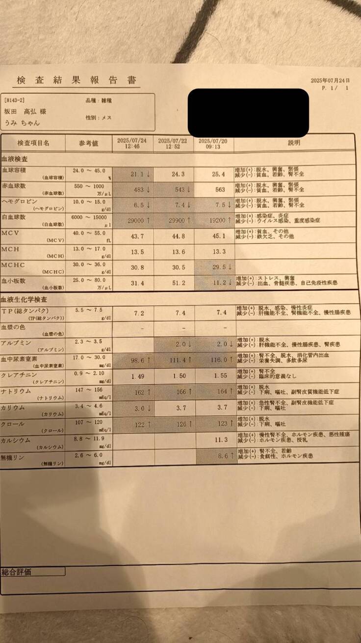 ただ白血球の数値が高止まりしており、これは恐らく口の炎症が原因だと思われる、とのことです。