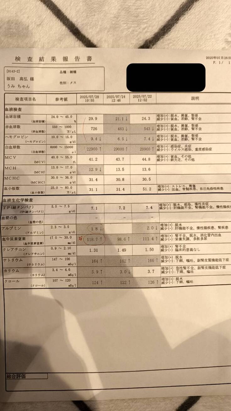 血液検査の結果は思ったよりも悪くはないみたいとのこと。