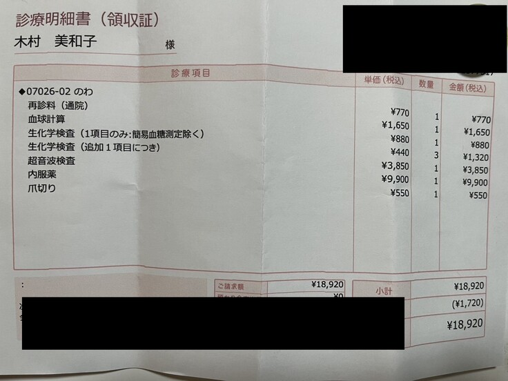 今日は検査が多かったのでいつもより高いです。