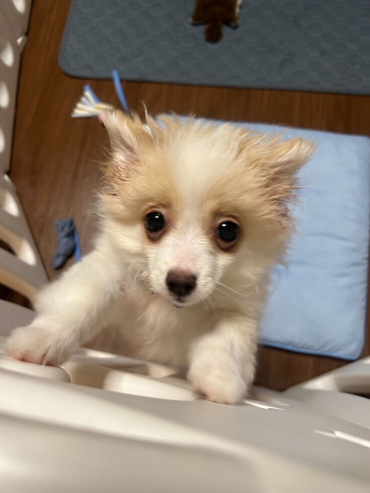 この子は保護したポメミックスが保護した時にすでに妊婦さんで我が家で生まれました。