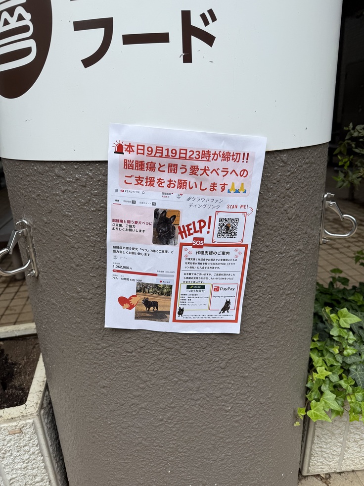 今日、ベラがいつもお散歩していた代々木公園にポスターを貼ってきました。
