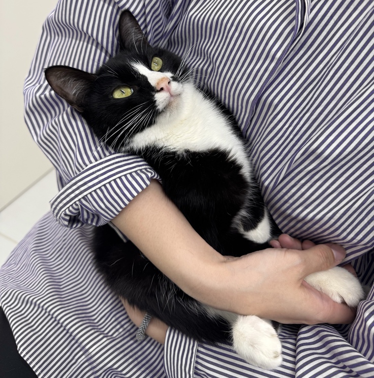 2023年6月頃に北海道小樽市で生まれた、ハチワレ模様のやんちゃな男の子アルは、小樽市で保護猫団体様に保護され、2024年2月26日に我が家(北海道札幌市)にやってきました。飼い主にぴったりひっついて毎日を過ごし、ごはんを毎日もりもり食べて、走って、ジャンプしてとっても元気に過ごしていました。 そんなアルが食事を摂れなくなり、歩けなくなり、、、今、**FIP(猫伝染性腹膜炎)**というとてもこわい病気と闘っています。