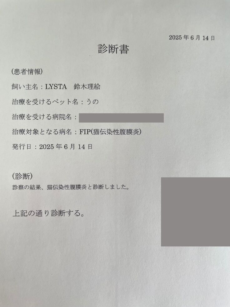 しかし、ゆりあんは、一件目の通院・血液検査で、FIPと診断することができず、他の病気の可能性を疑ってしまっていました。