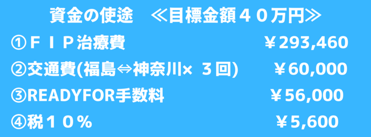 ネクストゴールを200万円と設定させていただき、医療費をご支援いただけないでしょうか。