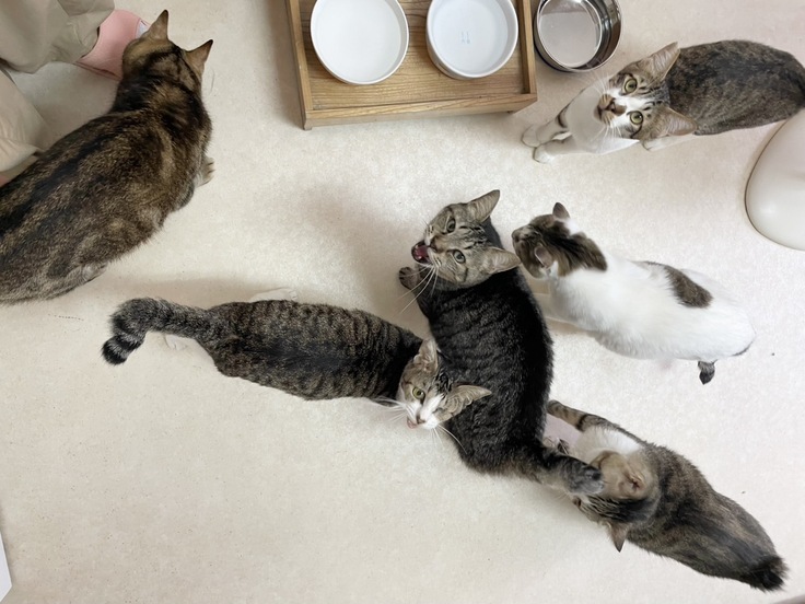 結果を待たずに先行してFIP治療を始めている太助くんは、すでに普段と変わらない様子でごはん待ちに参加しています。