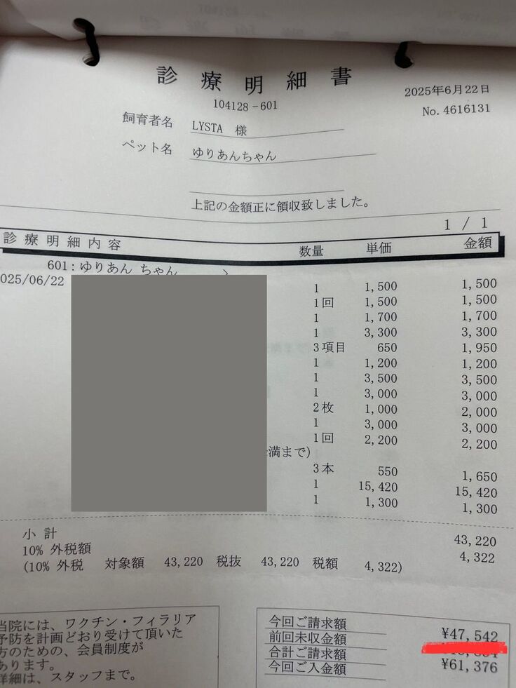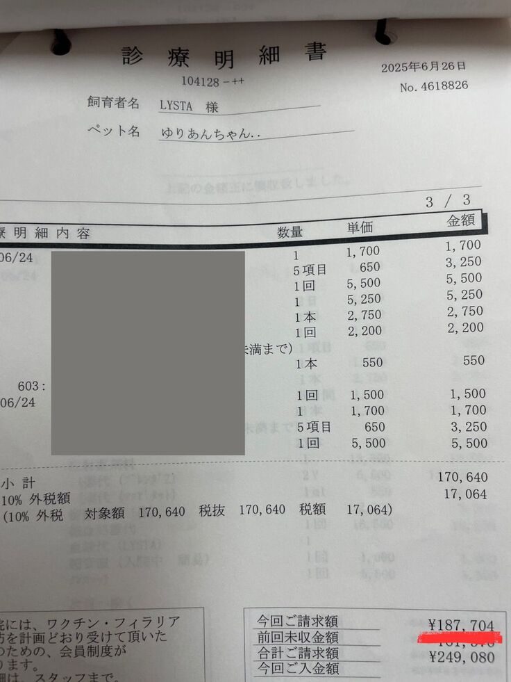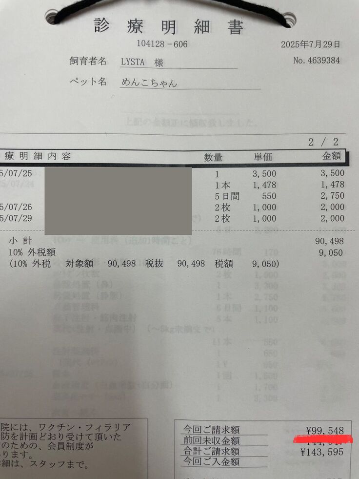 しかし「何か別の原因があるはずだ」と思い、▼こっちのかかりつけAに行き、「これはFIPじゃないのか」となったときの明細です。