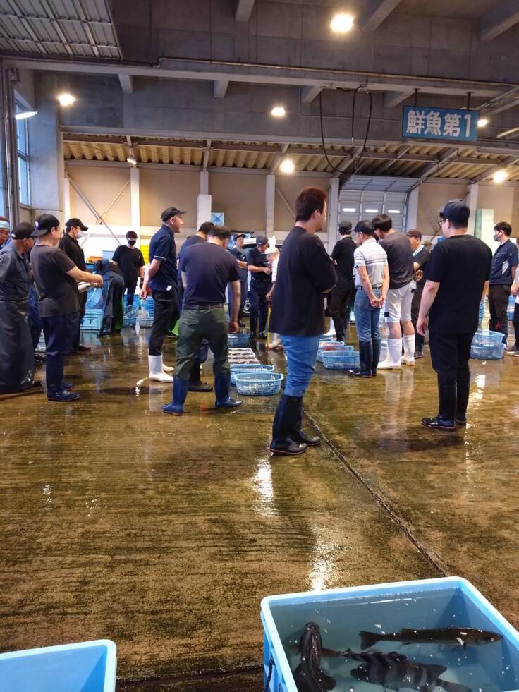 朝5時から七尾の市場へ見学に行き、新鮮な食材や流通の様子を学びました。
