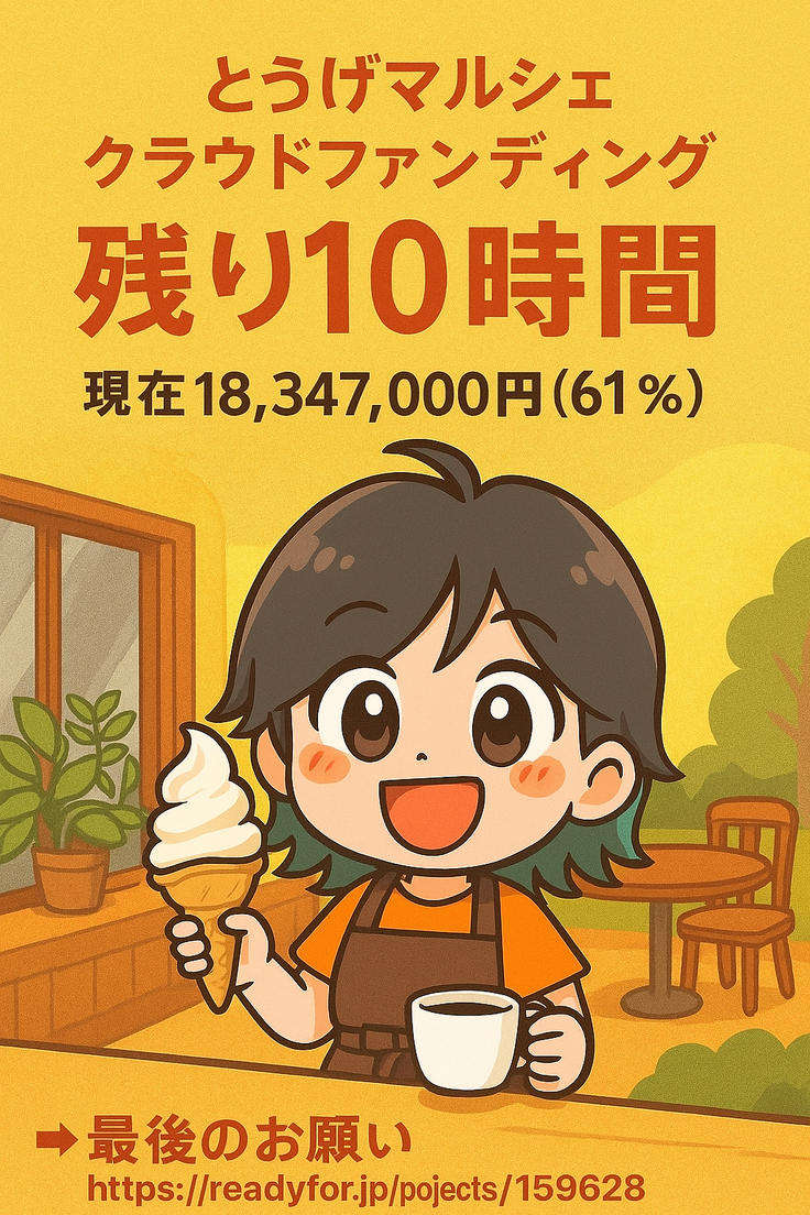 (とうげマルシェ来店時に、支援して頂いたご報告を頂ければその場で感謝の気持ちを伝え笑顔でハイタッチさせて頂きます)