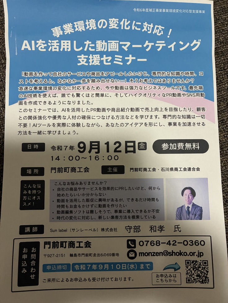 門前町商工会主催のマーケティングセミナーを受講してきました。