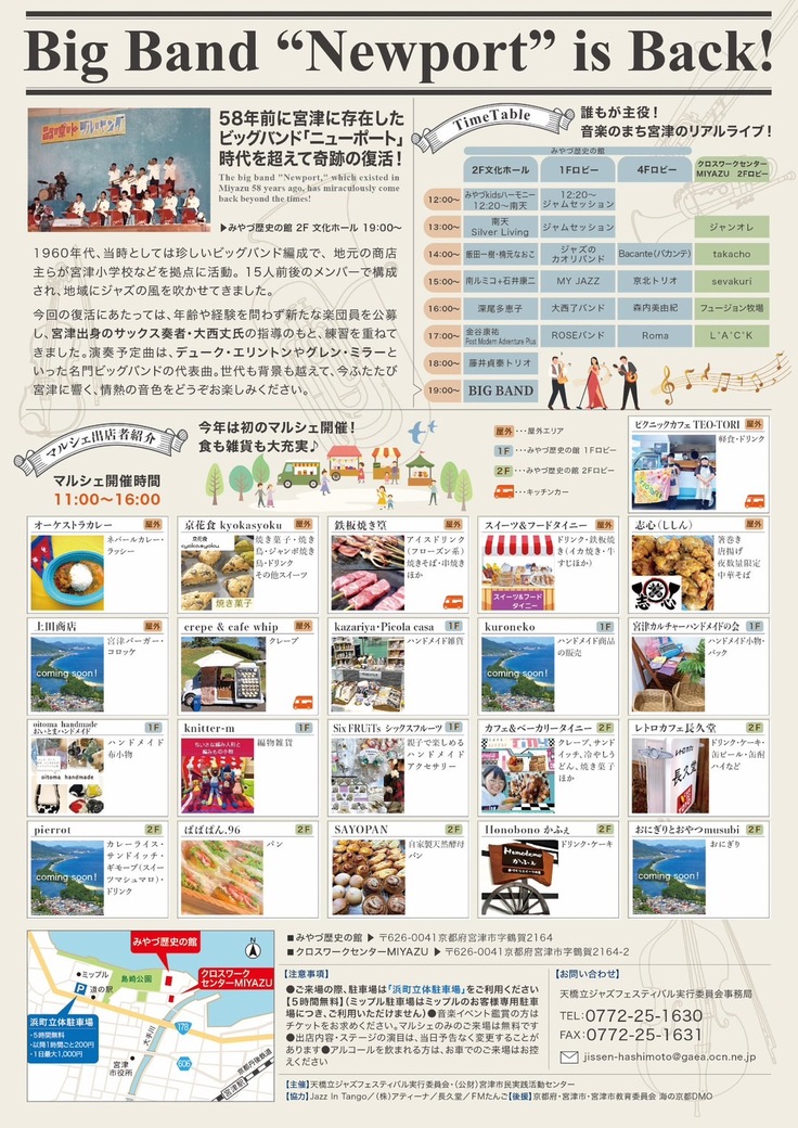 私自身、小学生の頃にそのバンドの演奏を聞き、強い憧れを抱いたことを今でも鮮明に覚えています。そして今年、当時のメンバーや思いを受け継ぐ市民とともに、この「ニューポート」を再結成します。年齢も経験も問いません。公募で集まった市民ひとり一人が奏者となり、フェスのステージで再び宮津のまちにビッグバンドの音色を響かせる。そんな歴史的瞬間を、みなさんとともにつくります。