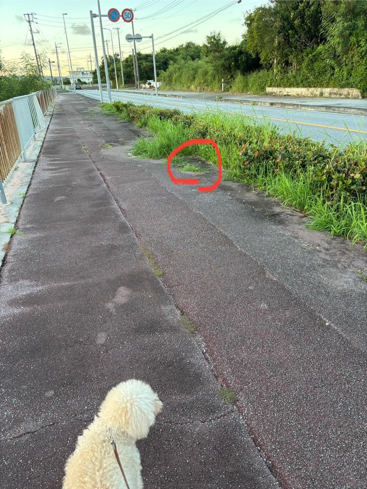(赤丸した場所です。草が生い茂り、この画像だと車道が見えませんね)