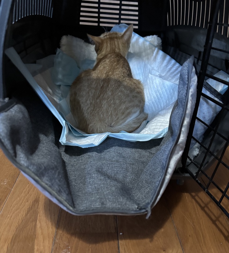 チャーは、キャリーの中でお漏らししてしまうほど緊張していて、