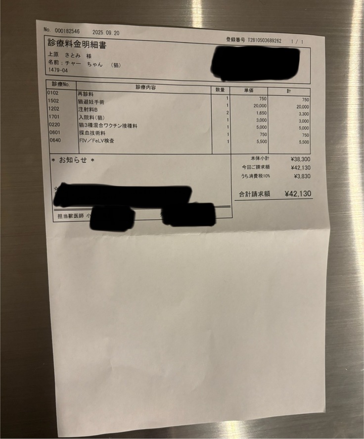 本日、予定していたチャーの避妊手術が無事に終わりました。