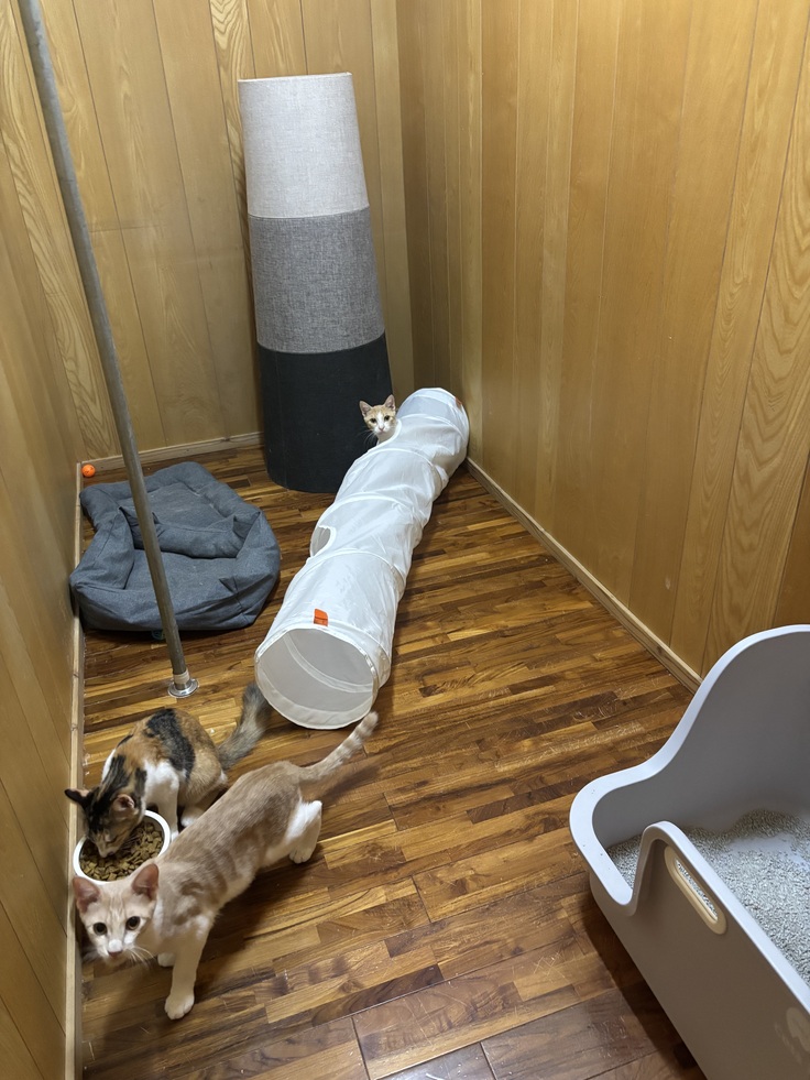 また、先住猫が感染症キャリアで、保護したラテ家族を2畳の物置部屋でなんとか隔離する日々。