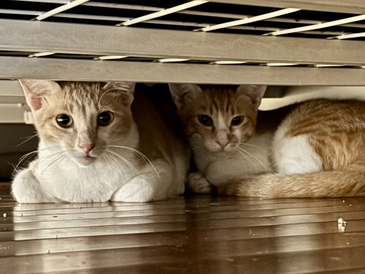 私が部屋に入ると急いでベッド下に隠れてしまうラテ兄妹