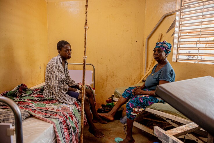 ボボ・ディウラッソの医療機関の様子(点滴室の患者と家族)