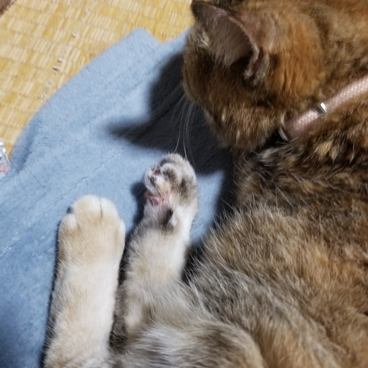 今日は会いに行ったら爆睡していましたが新しい缶詰をもらったら起きてきてカリカリと缶詰とお水を見てどれにしようか悩んでいました。