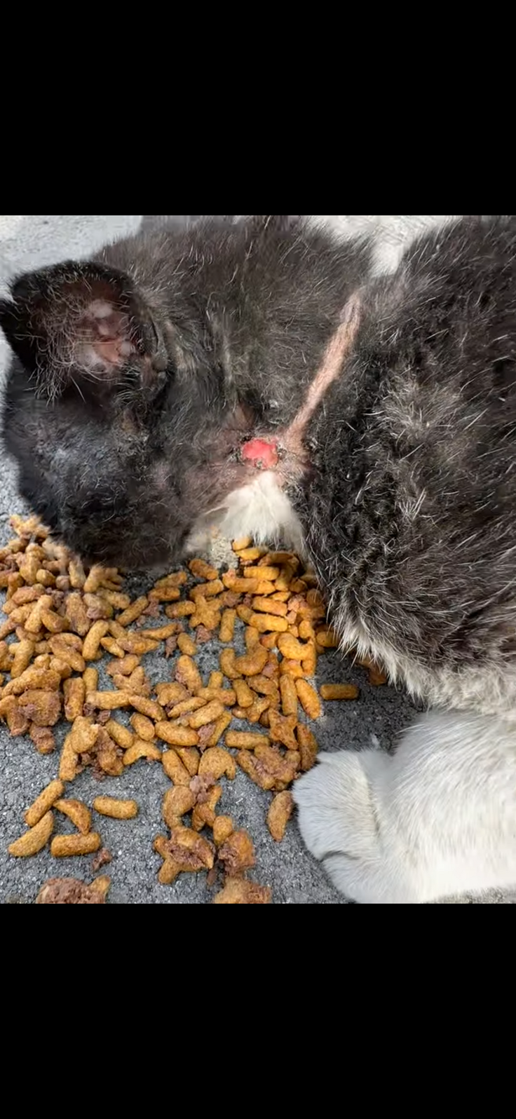 そんな中、首に何年も何かを巻き付けていた跡のある野良ちゃんがいました