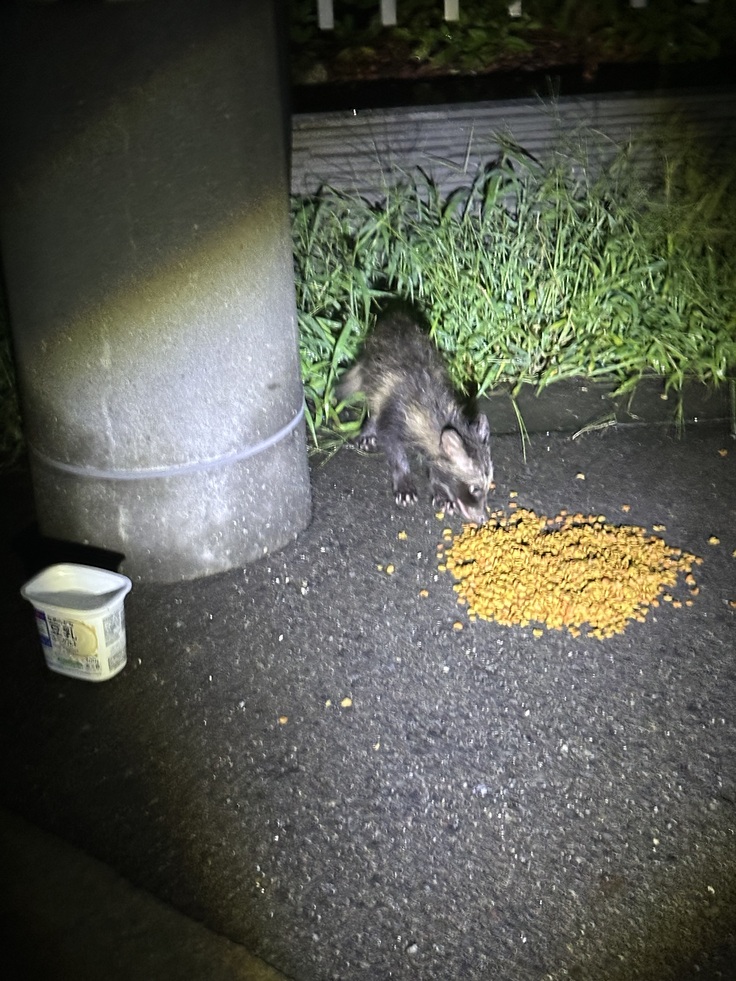 埠頭ではタヌキも子供を5匹連れて来るようになって先にアライグマとタヌキにご飯をあげないと猫ちゃん達のご飯横取りされてしまいます💦