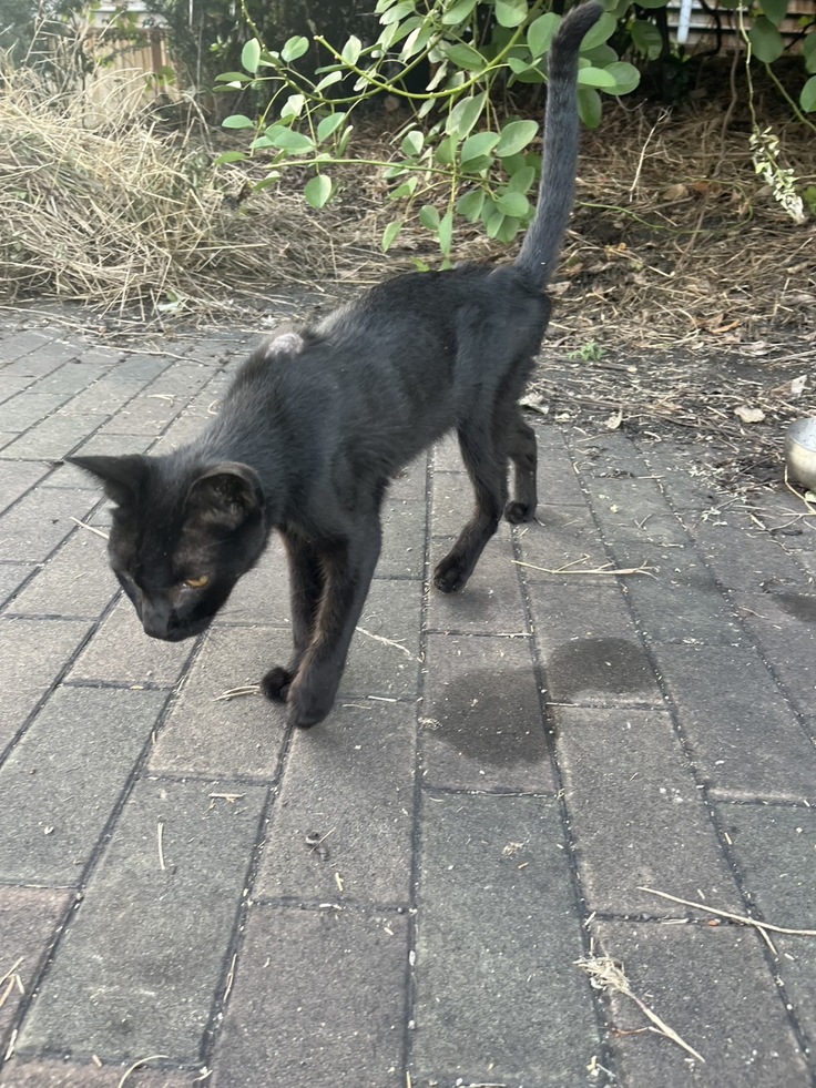埠頭のまだ南側の工業地帯で餌やりしてくれてる方からガリガリの黒猫ちゃんが擦り寄ってきますと写真動画で連絡をもらってちょっと本当に痩せすぎだと思い緊急保護いたしました