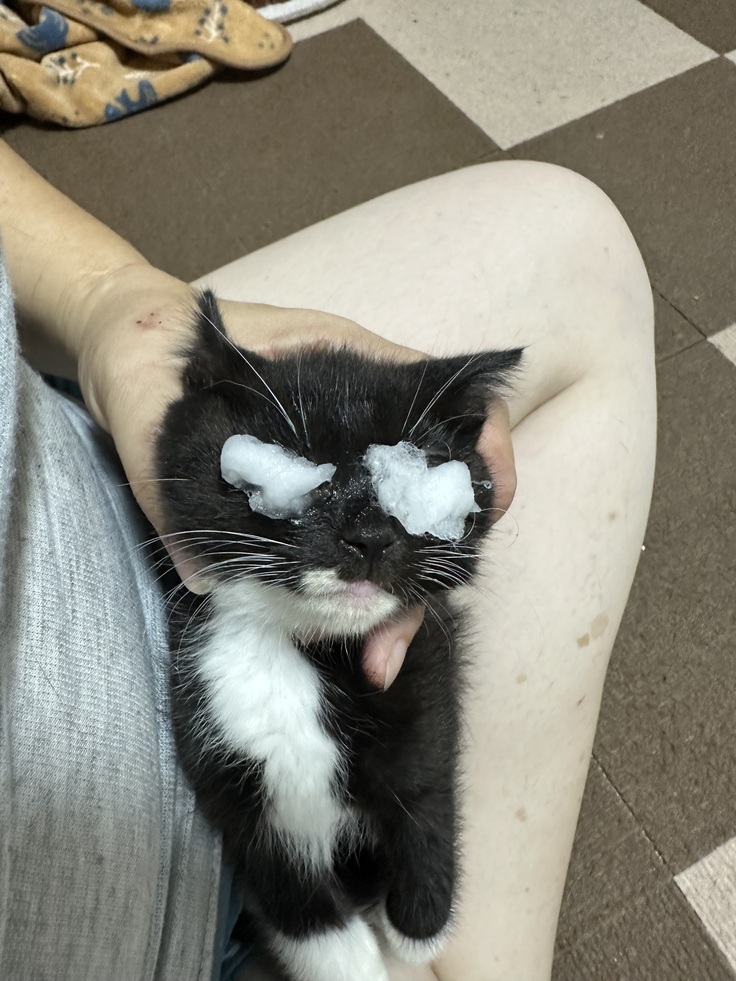 先生が子猫も診てくださったのですが猫風邪で目がひどく失明の恐れありと言われて治療していただきました