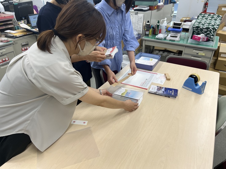 手作業で発送しています。領収証もこうして1つ1つ封入しています。