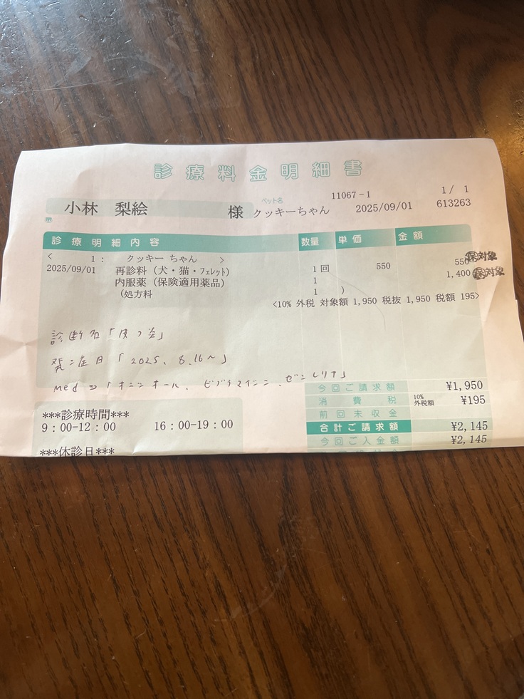 お薬をいただき、1週間飲ませみて、直らなかったら、また検査になってしまうかもしれません…