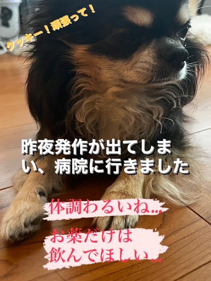 昨日、活動報告を入力している最中に、クッキーが痙攣硬直をしてしまい、慌てて病院に、行きました。