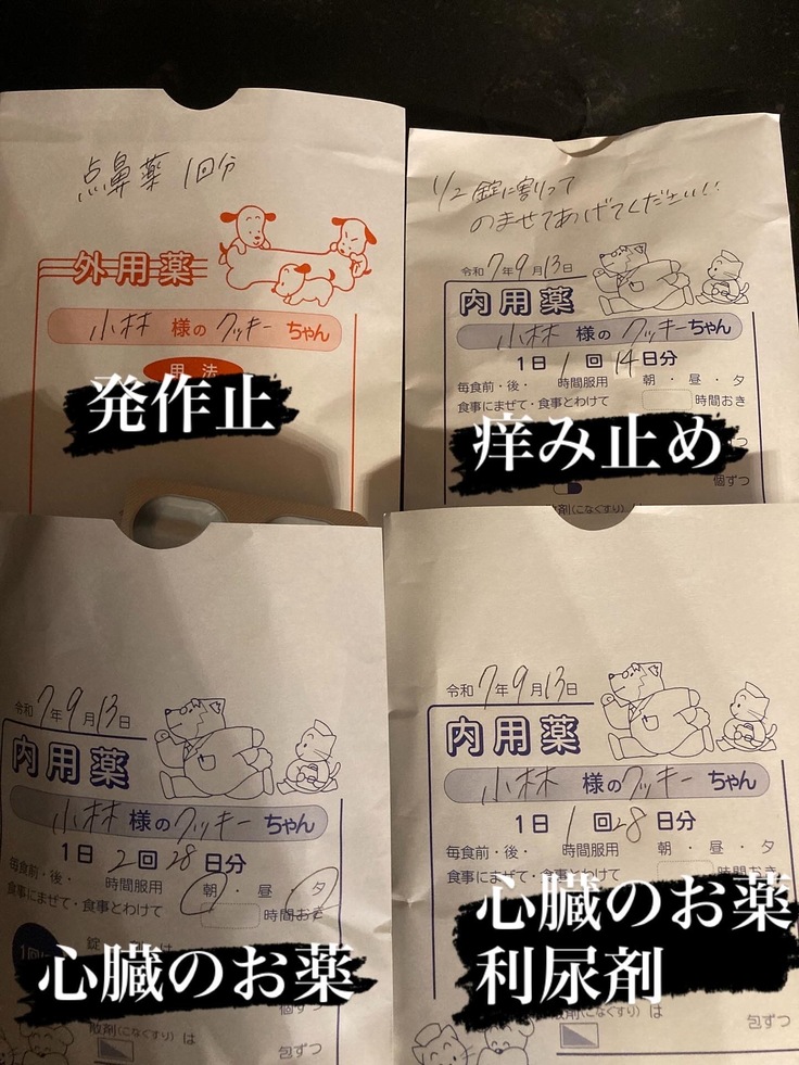 半年に一度程度発作が出ていましたが、心臓が悪くなってからは3ヶ月に1回増えてしまい…心臓で血液が逆流してらしまっている為、脳にも血液が行きにくいとの事で、多発しているのではないかとの事でした。