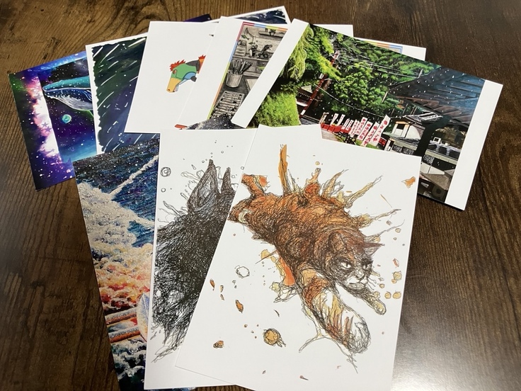 息子が日々向き合いながら描き続けている作品の中から、特に思い入れのある1点をポストカードにしました。